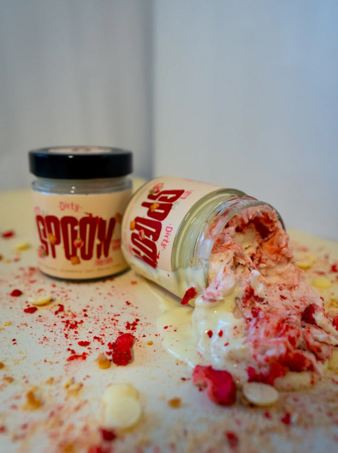 Dessert in a jar – no baking required. The Dirty Strawberry Cheesecake Spoon blends creamy Belgian white chocolate with sweet strawberry and biscuit crumb for the ultimate spoonable cheesecake experience.
