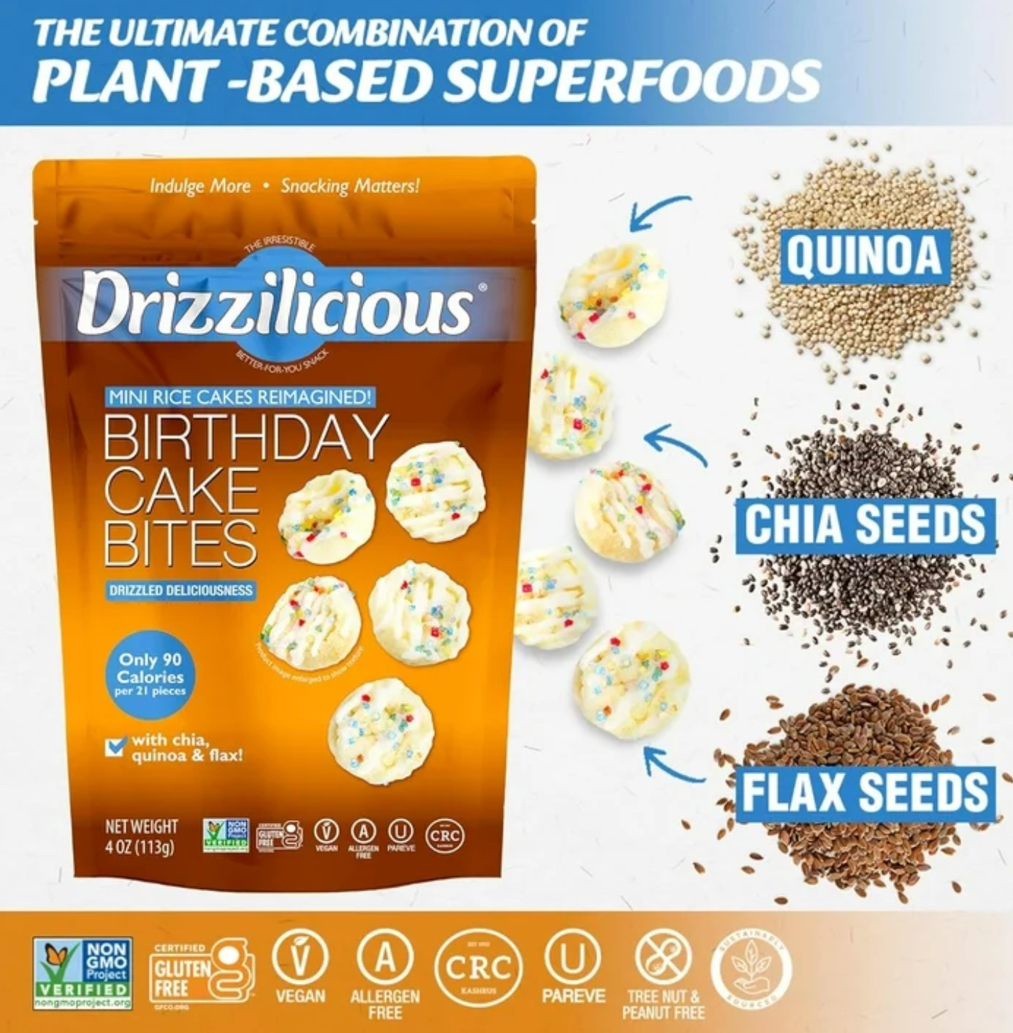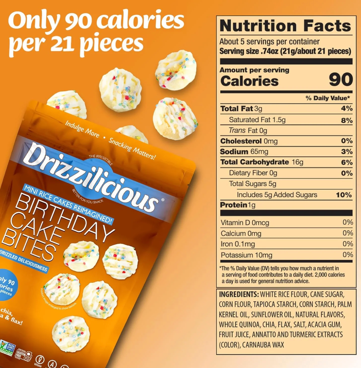 Celebrate every snack like it’s your birthday with Drizzilicious Birthday Cake Rice Cake Bites (113 g) 🎂✨