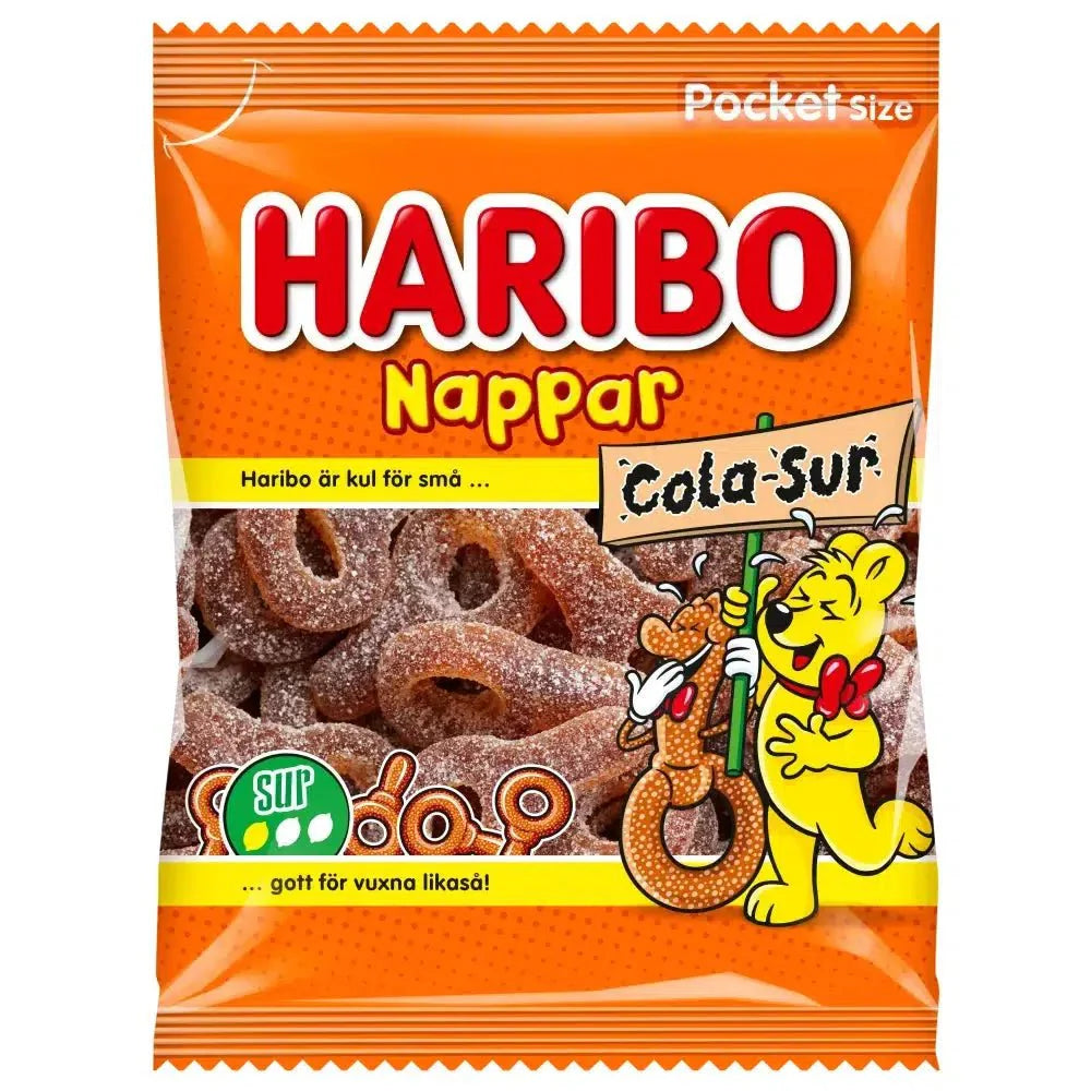 These fun Sour Cola Haribo Pacifiers or Dummies are from Sweden and this 80g pocket size are ideal for a Haribo Sour Coke flavour snack when you're on the go.