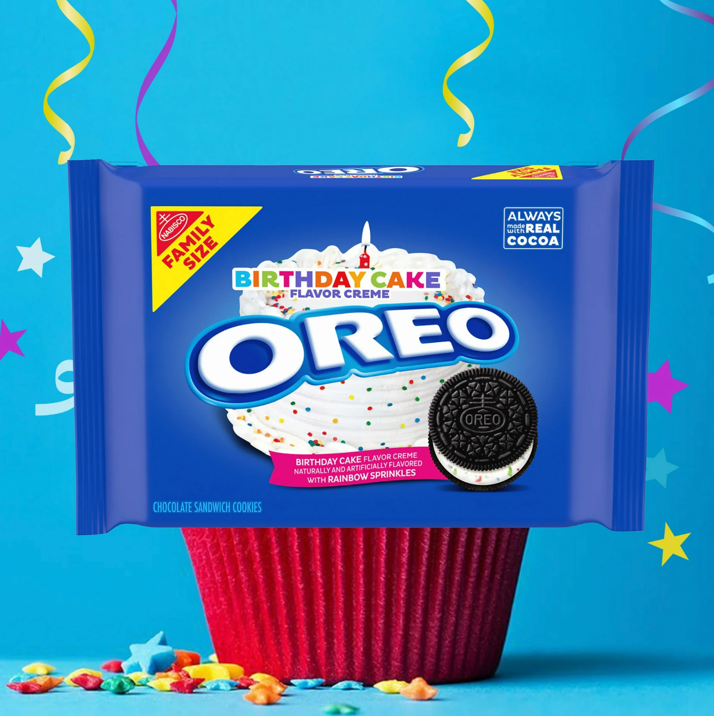 Twist, lick, and dunk for that iconic Oreo experience — or crush into frosting, cakes, or brownies for a fun birthday-inspired dessert.
