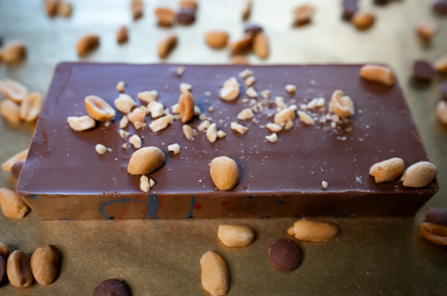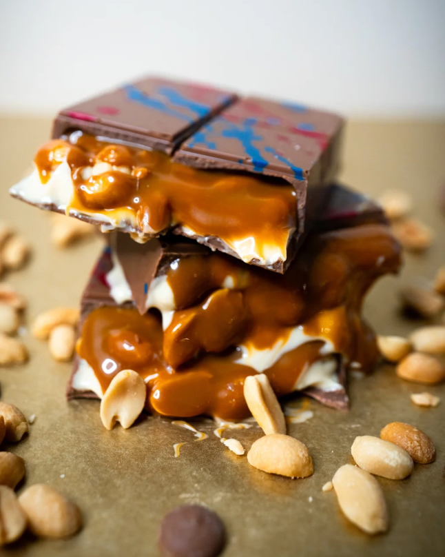 Chunky, crunchy peanuts are cloaked in gooey caramel and layered with a silky peanut‑nugát that flows on your tongue. It’s a “dirty” delight at its boldest and best.