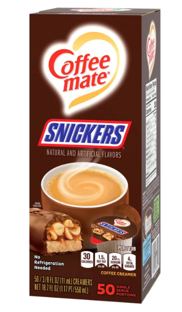 Sweet, convenient, and candy-inspired — Coffee Mate Snickers Non-Dairy Creamer Tubs make every coffee break feel like a treat.
