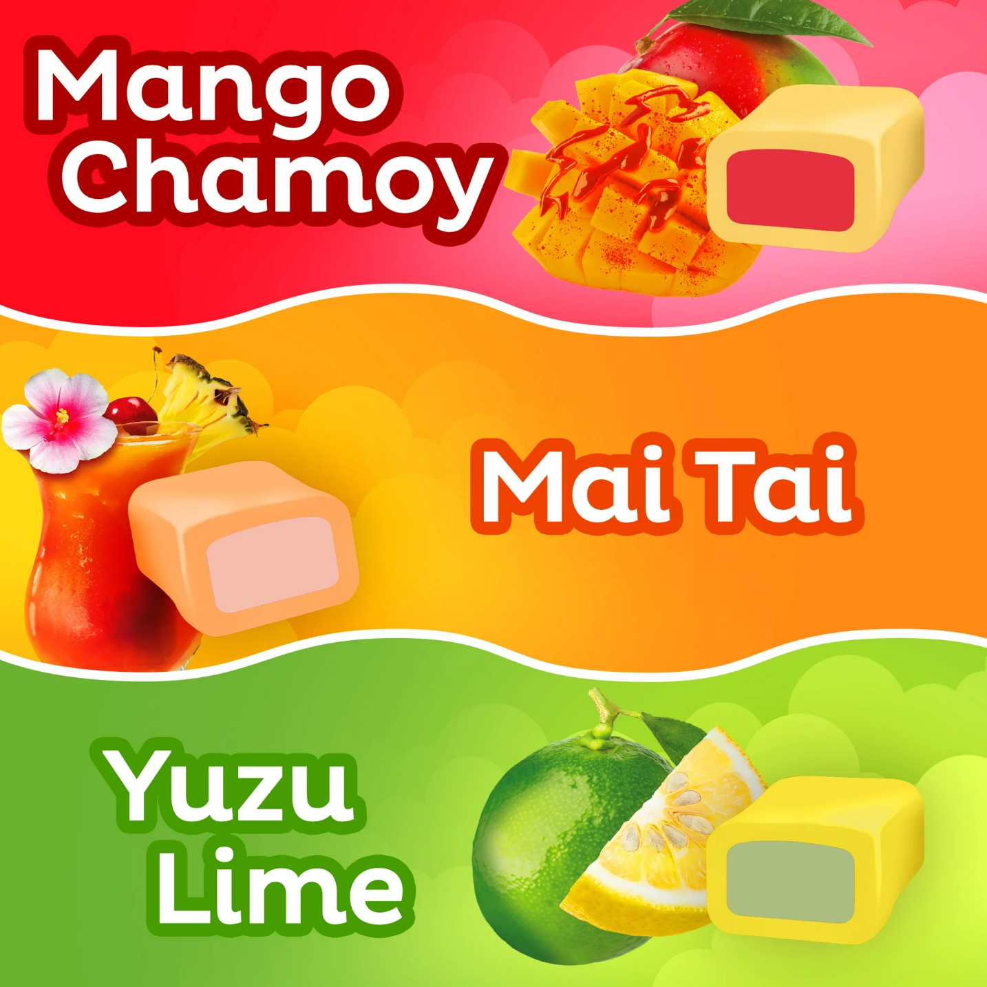 Unwrap, chew slowly, and let the holiday flavours take you away. Mix them up for a fruity cocktail of taste, or savour each piece to enjoy its full tropical magic.