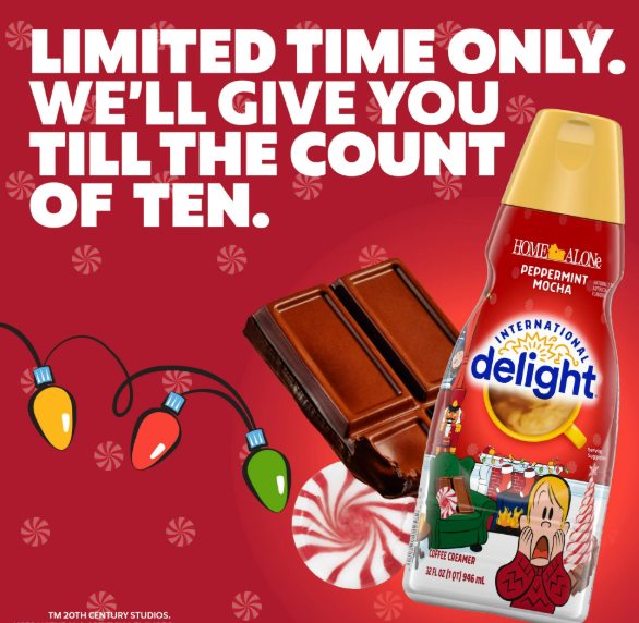 Cool, chocolatey, and irresistibly festive — International Delight Home Alone Peppermint Mocha Creamer delivers holiday flavour in every sip.