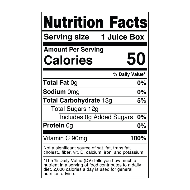 Ingredients: Apple Juice (from concentrate), Water, Vitamin C, and Natural Flavourings.