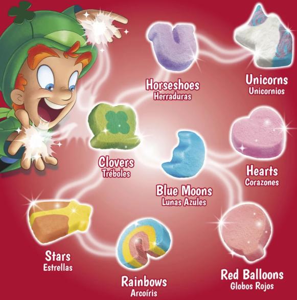 ✅ Classic Lucky Charms Magic – Crunchy oat cereal blended with colourful marshmallow charms.