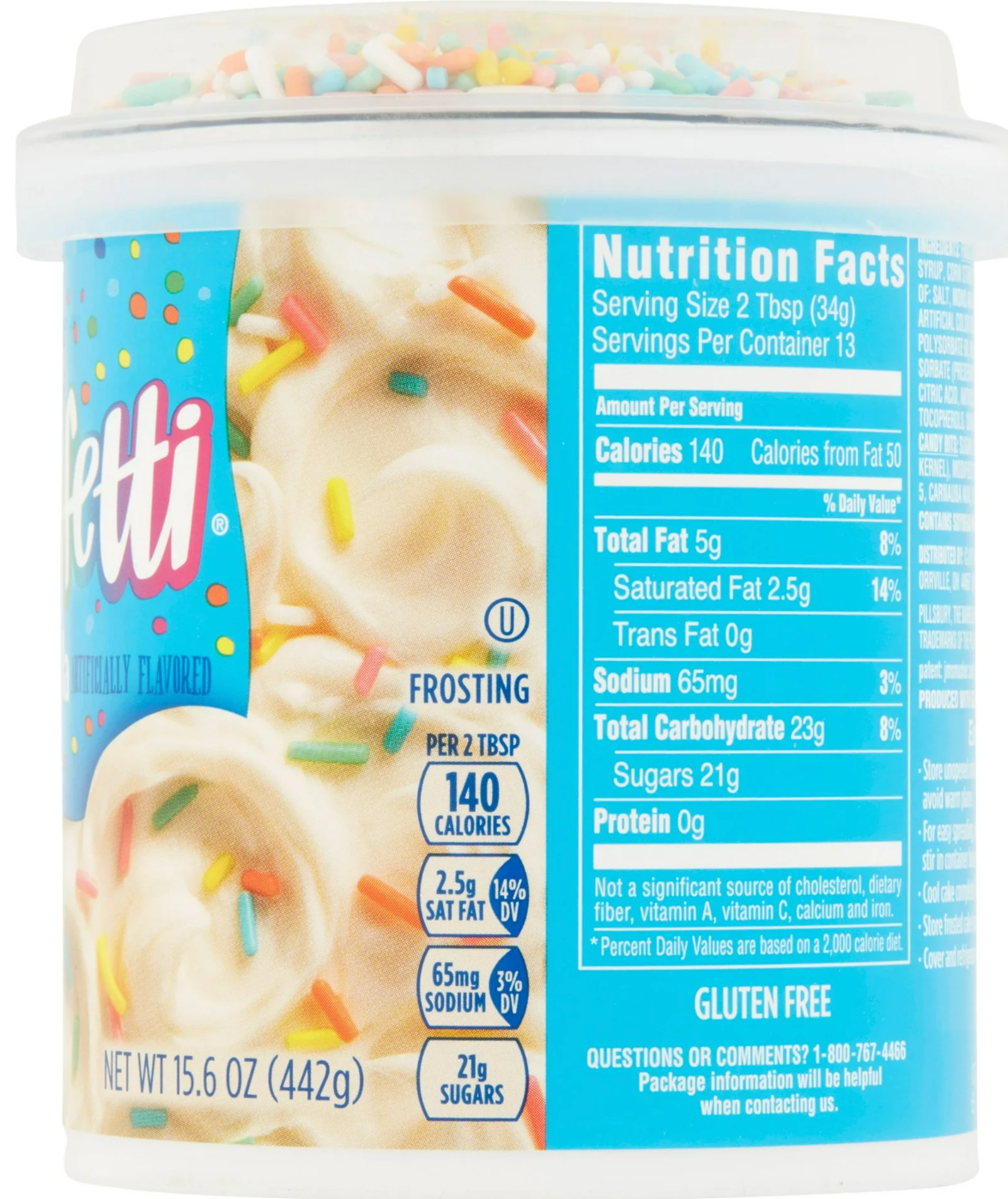 Top your cakes and cupcakes with a burst of colour and sweetness using Pillsbury Funfetti Vanilla Frosting with Candy Bits (442 g) 🎂🎉 A creamy, smooth vanilla frosting sprinkled with vibrant candy pieces, it’s the easiest way to turn any bake into a celebration. Whether you’re finishing off a Funfetti cake or decorating cookies, this frosting adds instant fun and flavour.