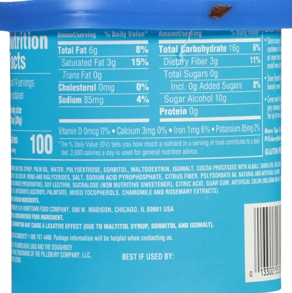 This deliciously rich and creamy frosting delivers the same indulgent fudge taste you love from Pillsbury – but with zero added sugar. Perfect for spreading, dipping, or decorating, it’s the smarter way to satisfy your sweet tooth.