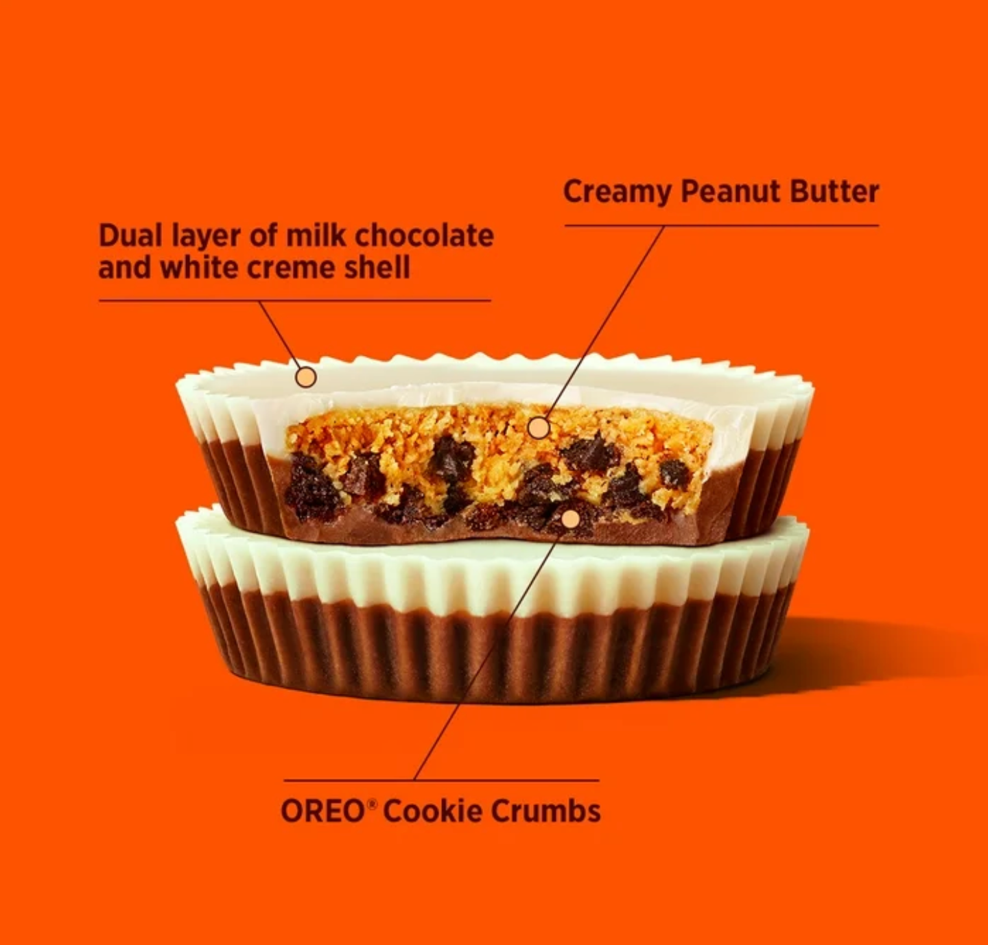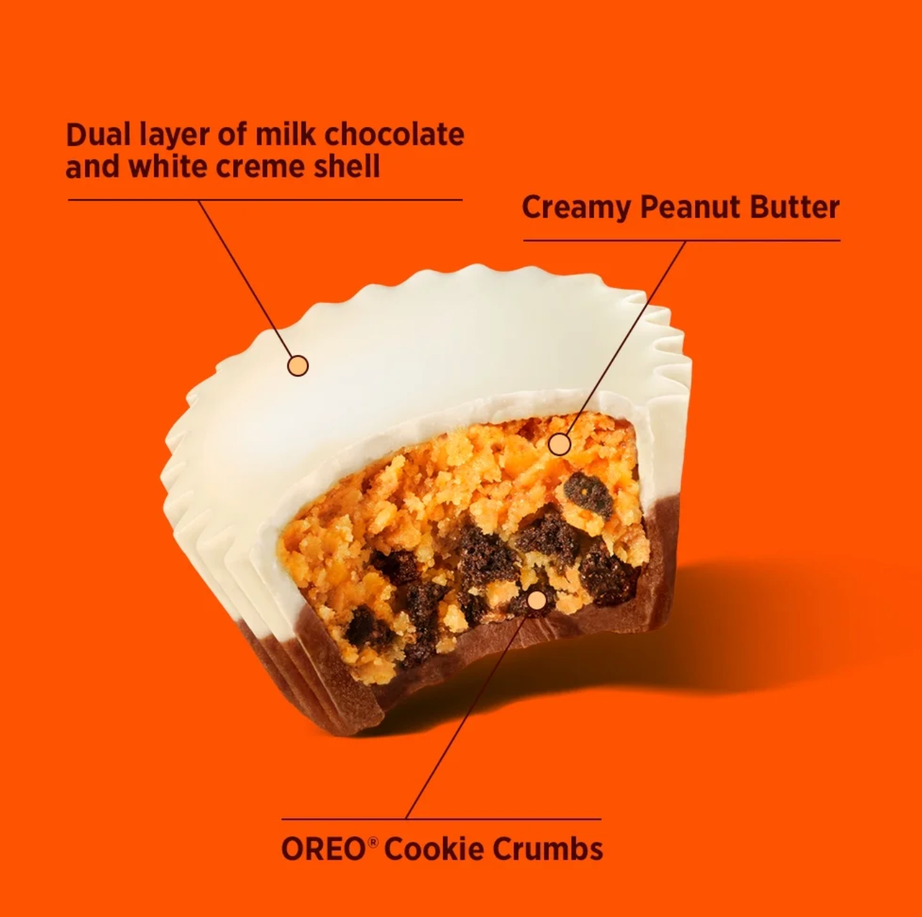 ✅ Iconic Combo – Reese’s creamy peanut butter meets Oreo’s crunchy chocolate cookie.